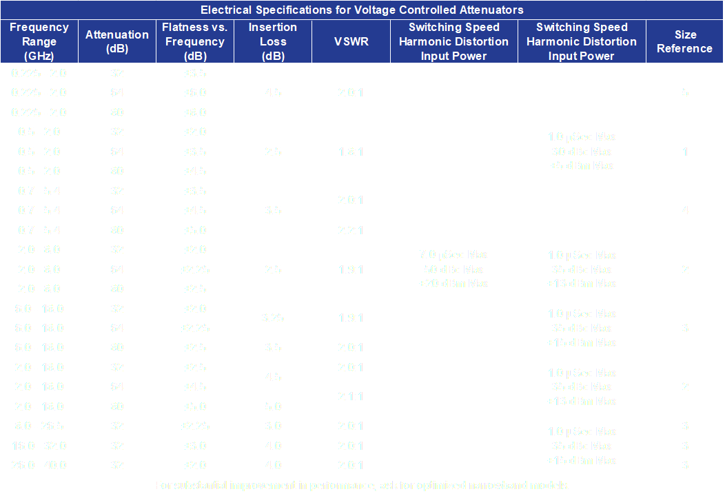 High Speed Switching:  Attenuators listed are measured from any set value to any value.  Switching speeds up to 300 ƞSec on request.